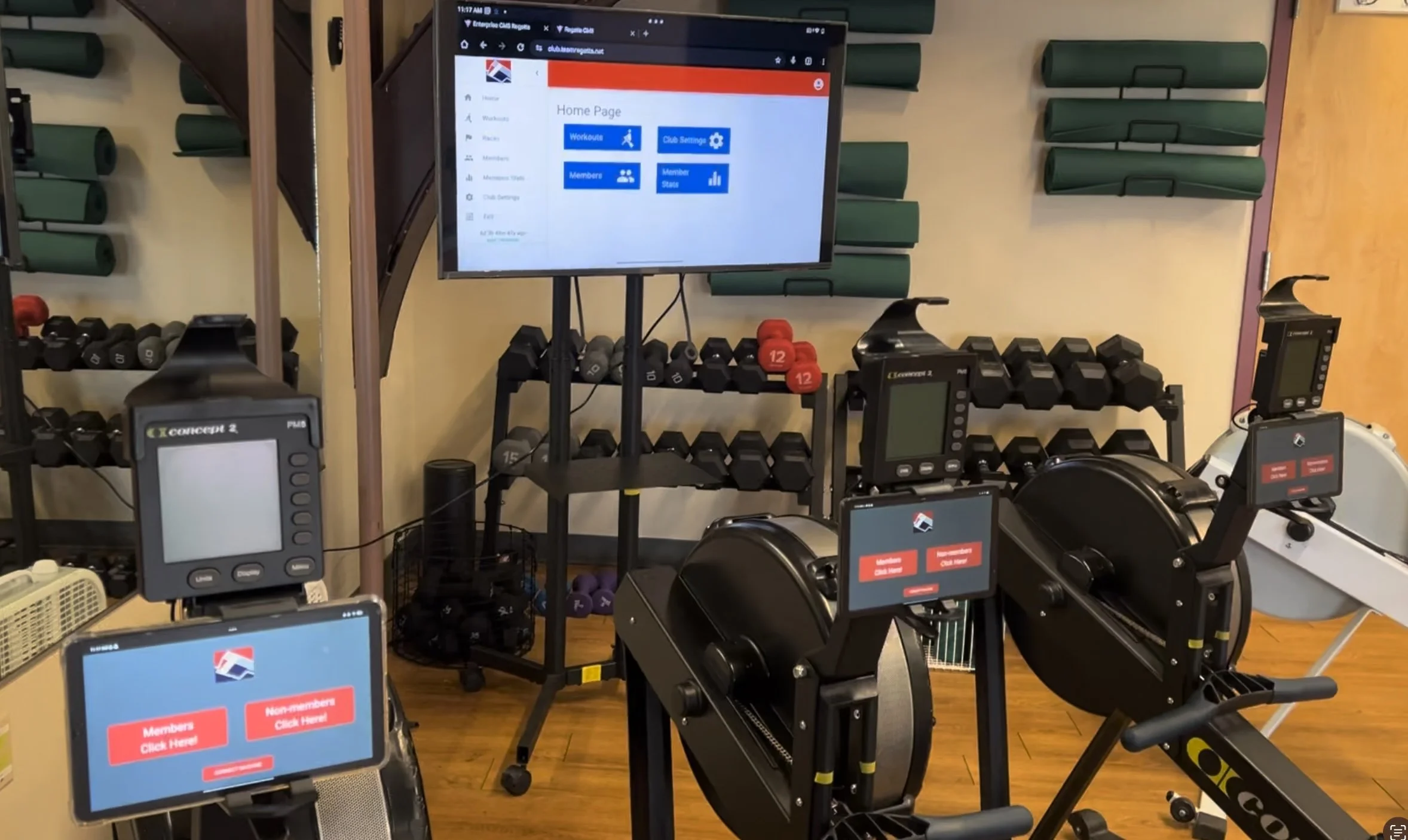 Sessions are projected in erg room